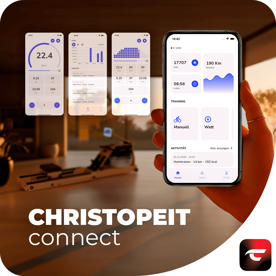 Verbinde deine Heimfitnessgeräte mit der App und erlebe Training in einer neuen Dimension. Mit Christopeit Connect holst du das Maximum aus jedem Workout heraus – live, datenbasiert und perfekt auf deine Ziele abgestimmt. Unsere App zeigt dir Trainingsdaten in Echtzeit, speichert deine Erfolge und begleitet dich zu deinem persönlichen Wochenziel. Ganz egal ob Crosstrainer, Ergometer, Laufband oder Rudergerät – Christopeit Connect koppelt sich nahtlos mit unseren kompatiblen Geräten und holt das Beste aus deinem Training heraus. Die App ist aktuell mit Modellen ab Baujahr 2025 kompatibel. Eine Übersicht der unterstützten Geräte findest du unten auf dieser Seite. Wir arbeiten kontinuierlich daran, die Kompatibilität auf möglichst viele Christopeit-Sport-Geräte auszuweiten.